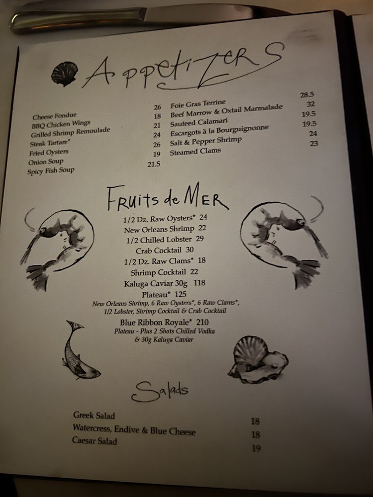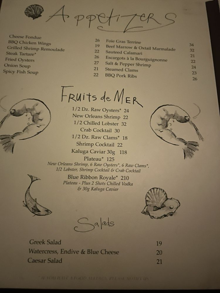 New Orleans Shrimp, Raw Oysters, Raw Clams, / Lobster, Shrimp Cocktail & Crab Cocktail